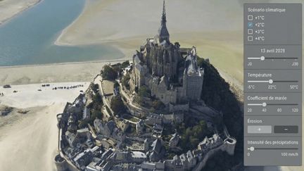 Illustration conceptuelle d\'un jumeau numérique des territoires au Mont-Saint-Michel (GEOFIT/IGO/IGN)